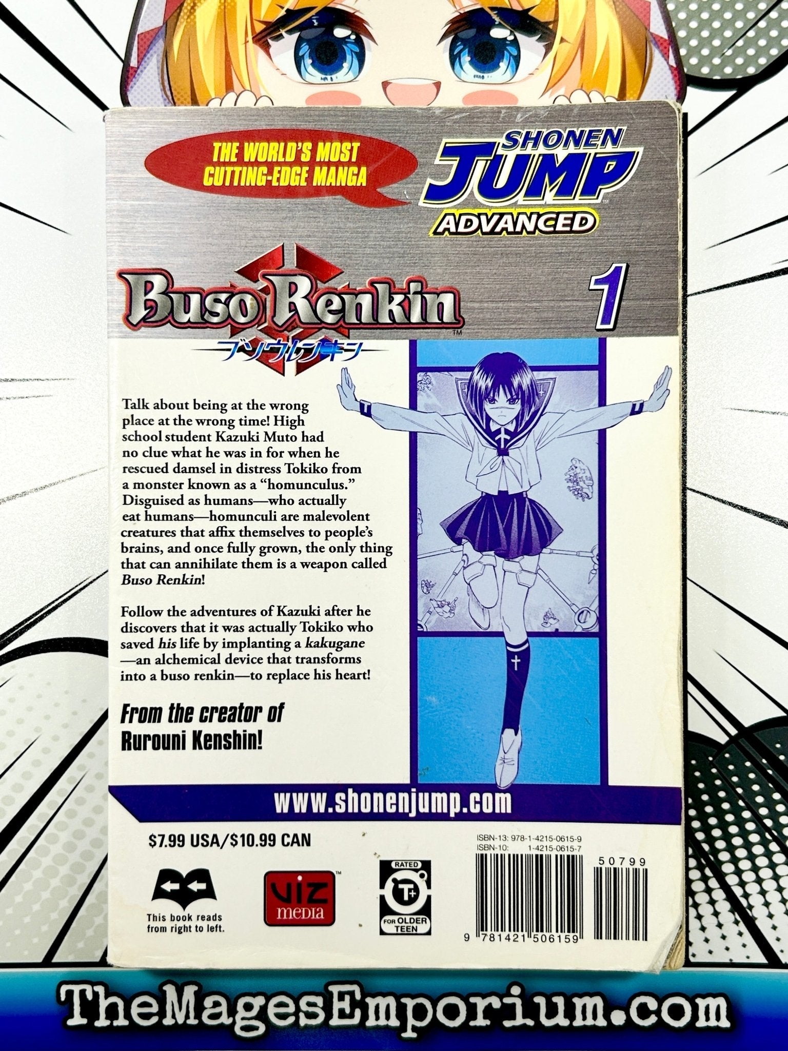 In this action-packed volume, written by Nobuhiro Watsuki, the mastermind behind the beloved Rurouni Kenshin series, you'll embark on an exhilarating journey alongside the charismatic protagonist, Kazuki Muto. Set in a modern-day Tokyo, Kazuki's life takes an unexpected turn when he sacrifices himself to save a girl from a deadly creature known as a Homunculus. However, instead of meeting his demise, Kazuki is revived by the alchemical power of a mysterious device called the Kakugane, which grants him incredible strength and the ability to transform into a powerful warrior known as a Buso Renkin.