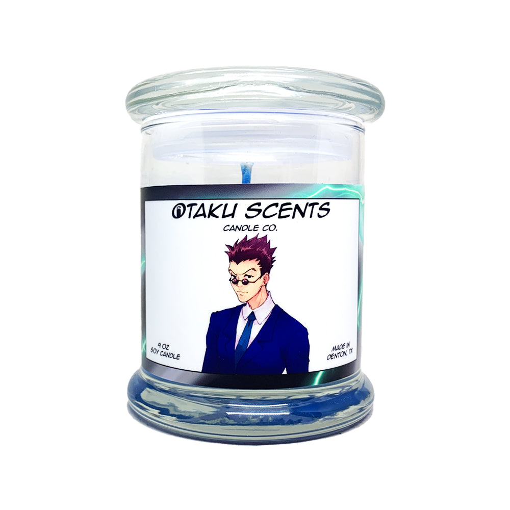 Inspired by Leorio's strong personality, this scent is a masculine blend of dark oak, bergamot, and bourbon.