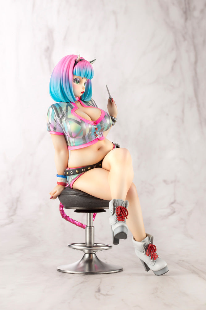- Bring home a SCULPTOR ORIGINAL that is easy-to-handle and ready to display. This is the first in the new ART FIGURE SELECTION line—a return to Kotobukiya's figure-making roots! Her confident eyes and refined presence captivate all who lay eyes on her. The name's Katie Moon and she is a strong and independent cosplayer who refuses to follow others' paths. "Trick or Treat" is a masterpiece created by Yoshiki Fujimoto, a sculptor who continues to amaze the sculpting world with his outstanding design work, modeling skills, and painting techniques. With the original garage kit*, finishing the figure requires a high level of skill and much time to assemble and paint. In order to make the product more accessible, Kotobukiya will be releasing this item as a fully-assembled, pre-painted PVC figure that can be displayed out of the box. This figure is packed with features such as her characteristic costume on her glamorous body, a color gradation in her beautiful hair, and a popping metallic finish. Manufactured in the factory under Yoshiki Fujimoto's supervision using his paintmaster, this figure is sure to add a pop of gorgeous color to any room. Don't miss the chance to get this cutting-edge piece of the sculpting world. *Garage kits are detailed models produced in small quantities by casting materials such as resin in silicone molds of the original sculpt of the figure.