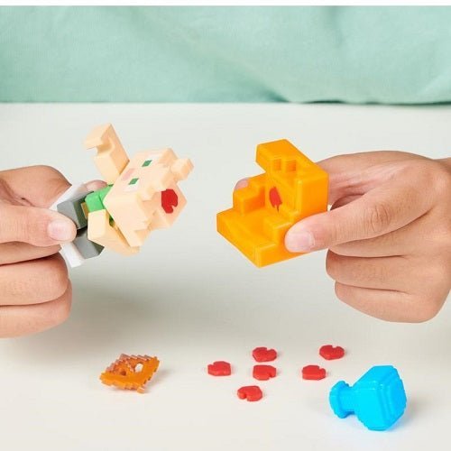 Mine through the Snow or Ooze and discover your hidden Treasure Chest and Craft Character! Craft your Minecraft Character using the Aqua Stick Hearts for no mess, instant crafting. Your Character will bond together in 5 minutes simply by using the Aqua Stick and water!