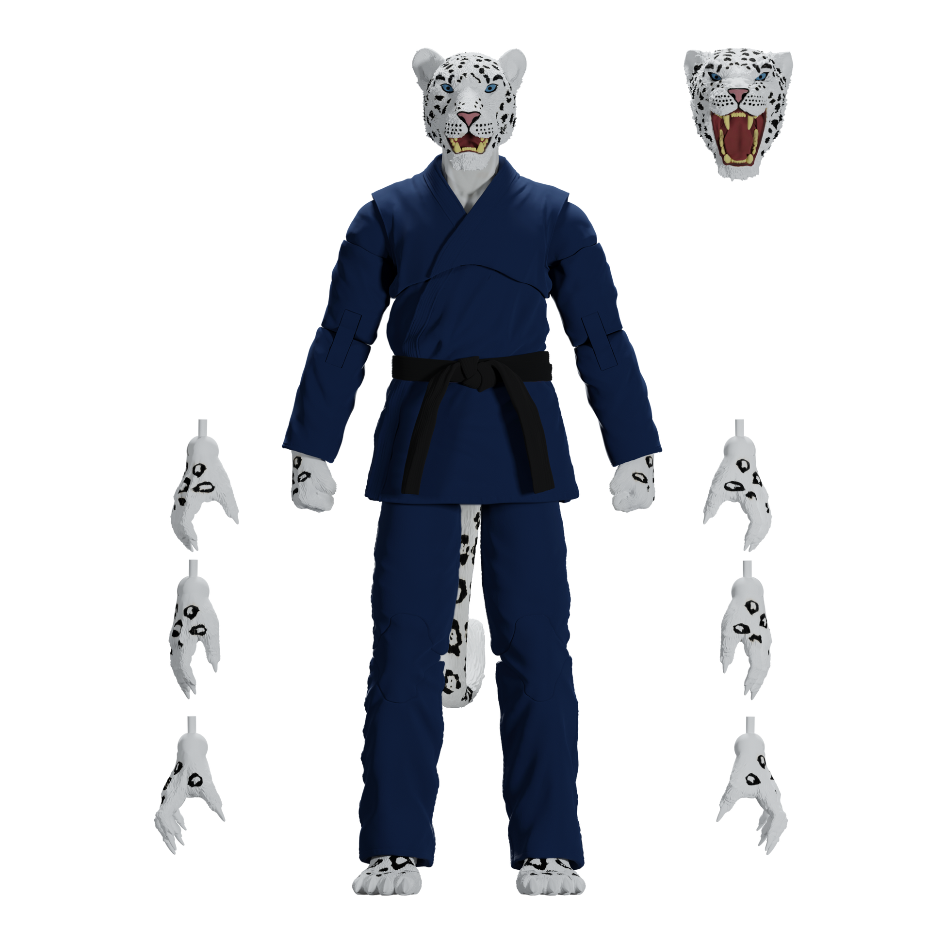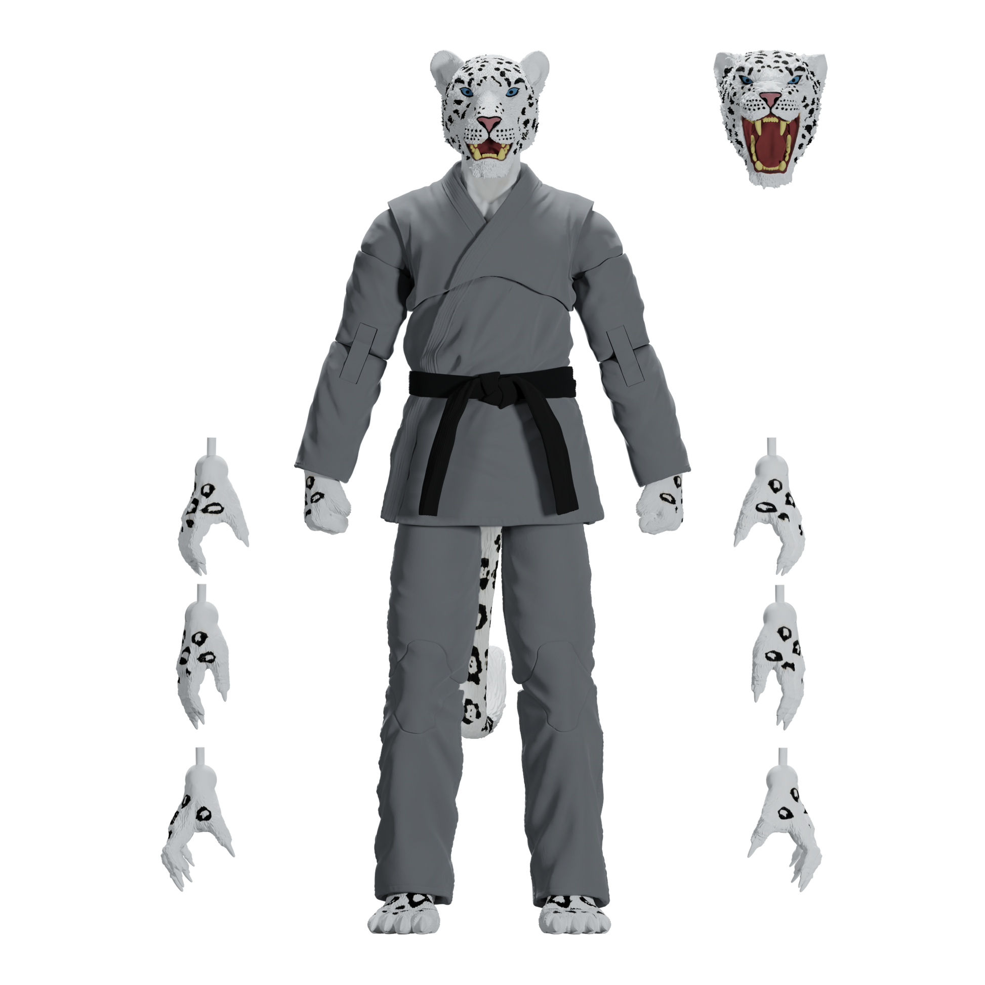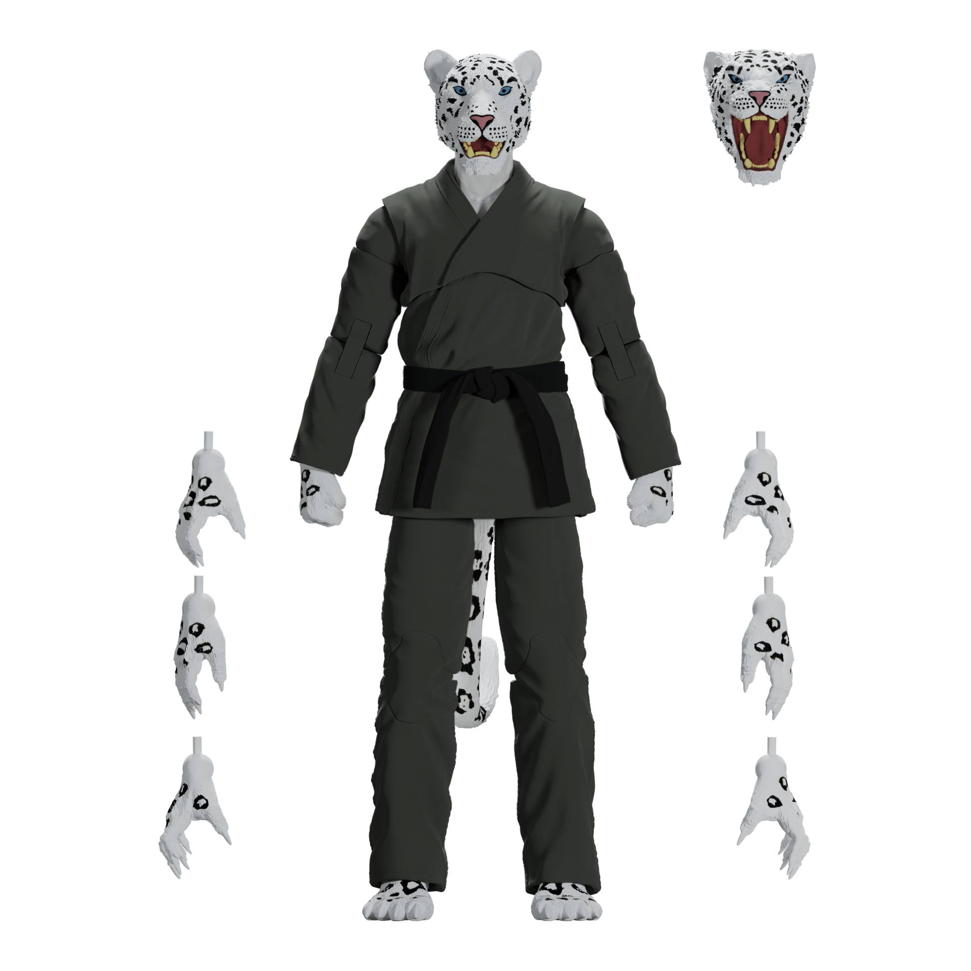 Unleash the fury of the mountains with the Zoo Jitsu Fighters Shadow the Snow Leopard Action Figure! Sculpted to perfection by the masters at Four Horsemen Studios, Shadow is fully poseable with 30 points of articulation, allowing you to recreate all your favorite snow leopard maneuvers or design your own fighting styles. But wait, there's more! Shadow includes not one, but TWO interchangeable heads to showcase his predatory prowess or battle-ready snarl. And if that wasn't enough, he comes equipped with a whopping eight interchangeable hands, allowing him to grapple, swipe, and fight for victory in any scenario.
